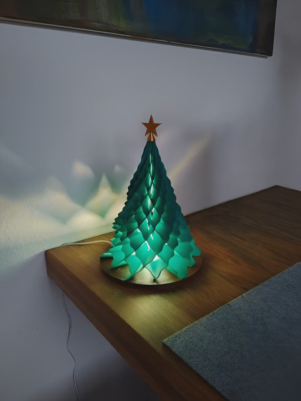 Ein integriertes USB-LED-Licht sorgt für stimmungsvolle Beleuchtung und lässt die geschichteten Farben sanft erstrahlen – ideal für gemütliche Winterabende. Ob als Blickfang in der Adventszeit oder als besonderes Geschenk: Dieser dekorative Baum vereint moderne Technik mit klassischer Weihnachtsromantik.